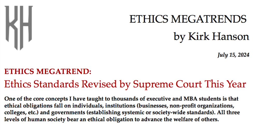 ETHICS MEGATRENDS by Kirk Hanson Newsletter