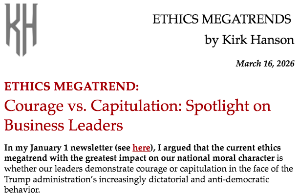 ETHICS MEGATRENDS by Kirk Hanson Newsletter